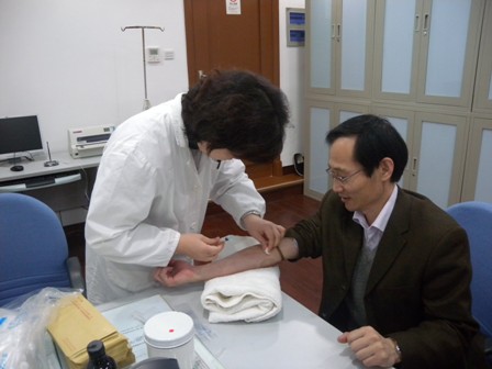 在病原形态鉴定方面,由于病人已服用抗原虫药物,所以在将送检的病人血液进行涂片观察的同时,还需进行动物接种和体外培养以进一步获取虫体结构。一般病人血液取来后先予以分装,然后分别进行相关实验。刚开始时动物采血观察的频次较高,而且由于病人血液都在晚上八九点钟才能取来,所以动物接种和采血工作都要持续要晚上,有时甚至是深夜12点多。同样为了尽快从分子生物学角度对病原体进行鉴定,负责这部分实验的同志更是通宵工作,只能轮流休息。而在体外培养试验中,作为实验用的"O"型血液一时间难以买到,为克服这一困难,有多位同志主动要求抽血以解燃眉之急。