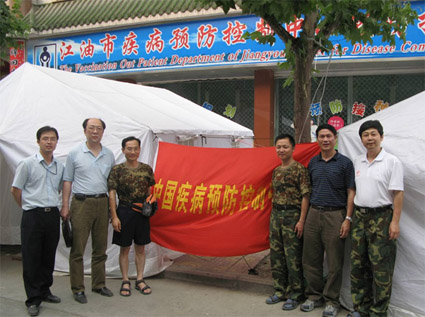 | 6月12日,汤林华所长等3人分别赴平武县南坝镇、江油市慰问防病救灾队员,并带去了他们急需的物资和慰问品。