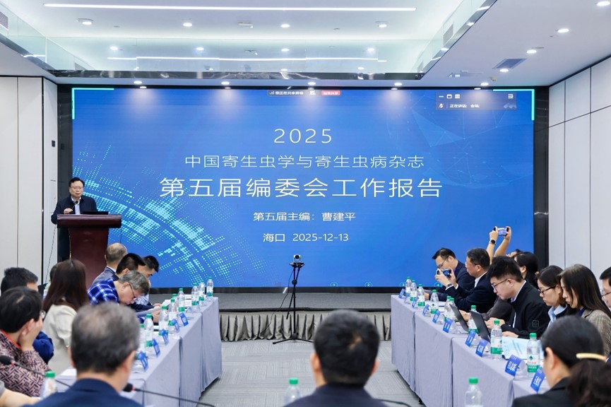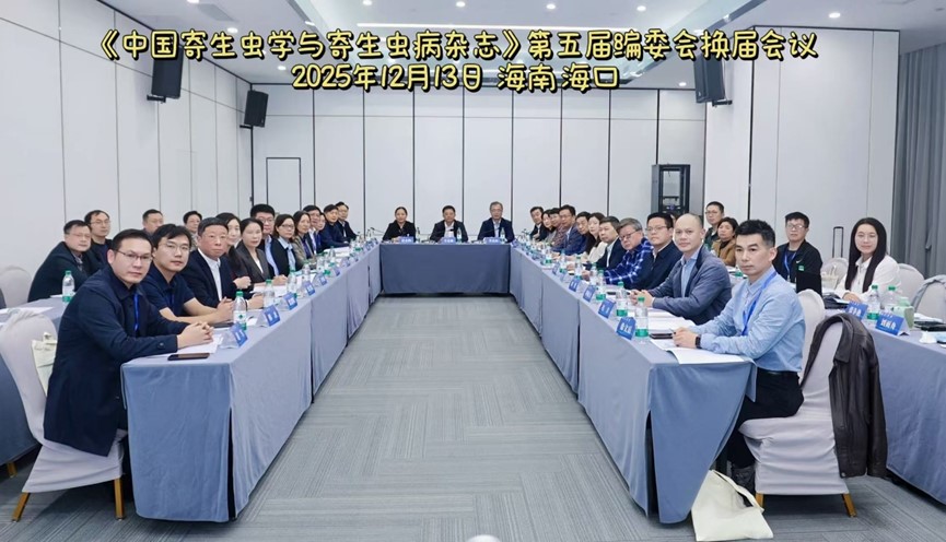 2025年12月13日,中国疾病预防控制中心寄生虫病预防控制所(国家热带病研究中心)(以下简称“寄生虫病所”)在海南海口召开了《中国寄生虫学与寄生虫病杂志》第五届编委会换届会议。中华预防医学会副秘书长李光琳、中国疾控中心学术出版管理处处长赵赤鸿、寄生虫病所所长李石柱、第六届编委以及编辑部成员等73人(线下41人、线上32人)出席会议。会议由寄生虫病所副所长郑彬主持。