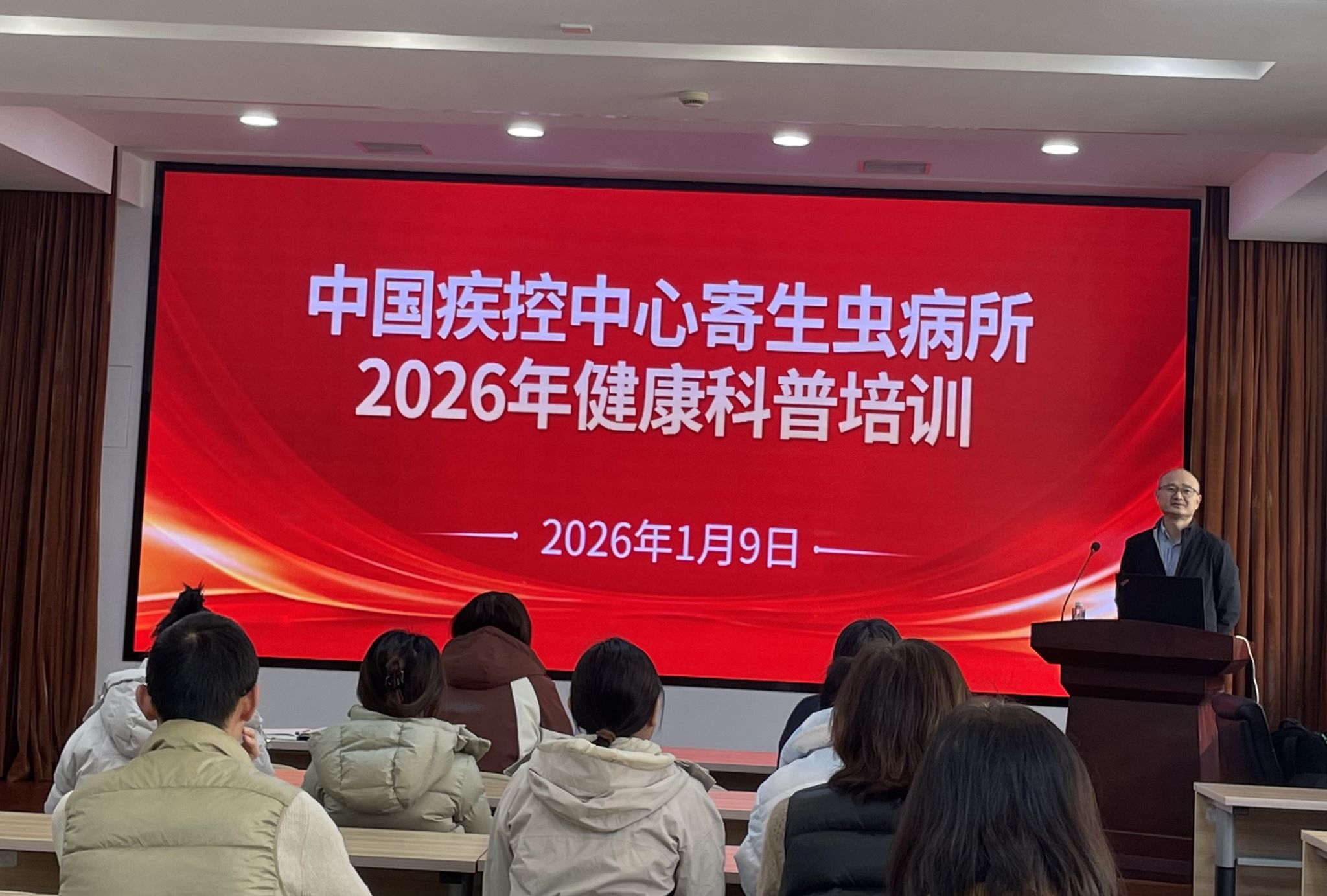 为提升全所健康科普水平,推动寄生虫病健康科普工作提质增效,2026年1月9日上午,我所组织开展了健康科普专项培训,全所各部门30余名干部职工参加。培训邀请中心(院)健康传播中心姚建义副主任作了“疾控健康科普宣教实践”为主题的专题指导,为大家解读了健康科普政策,传授了健康科普信息生成与传播技巧,分析了健康科普常见问题,并结合寄生虫病科普推文发布情况,提出了下一步工作指导建议,为我所进一步加强健康科普工作指明了方向。