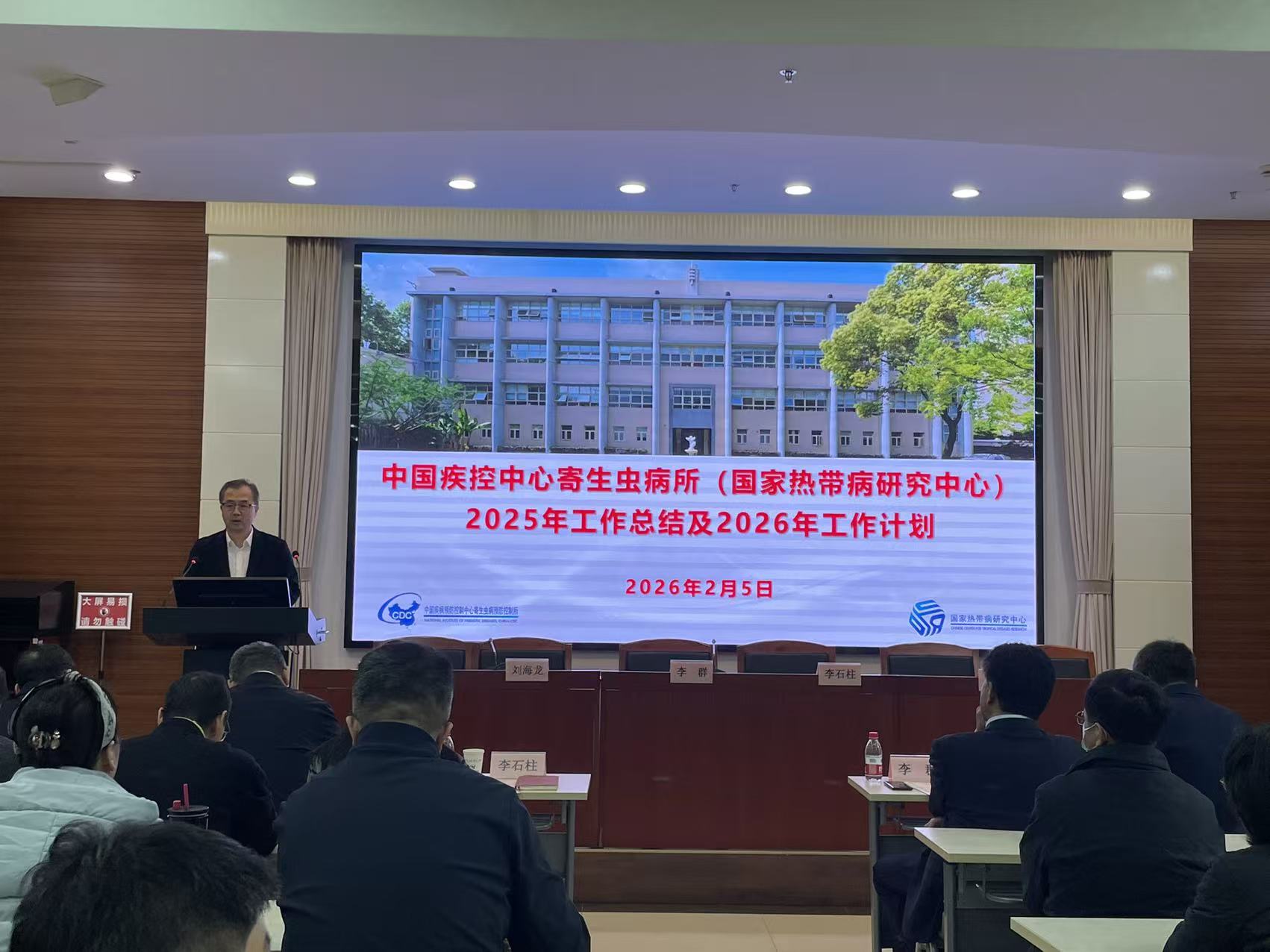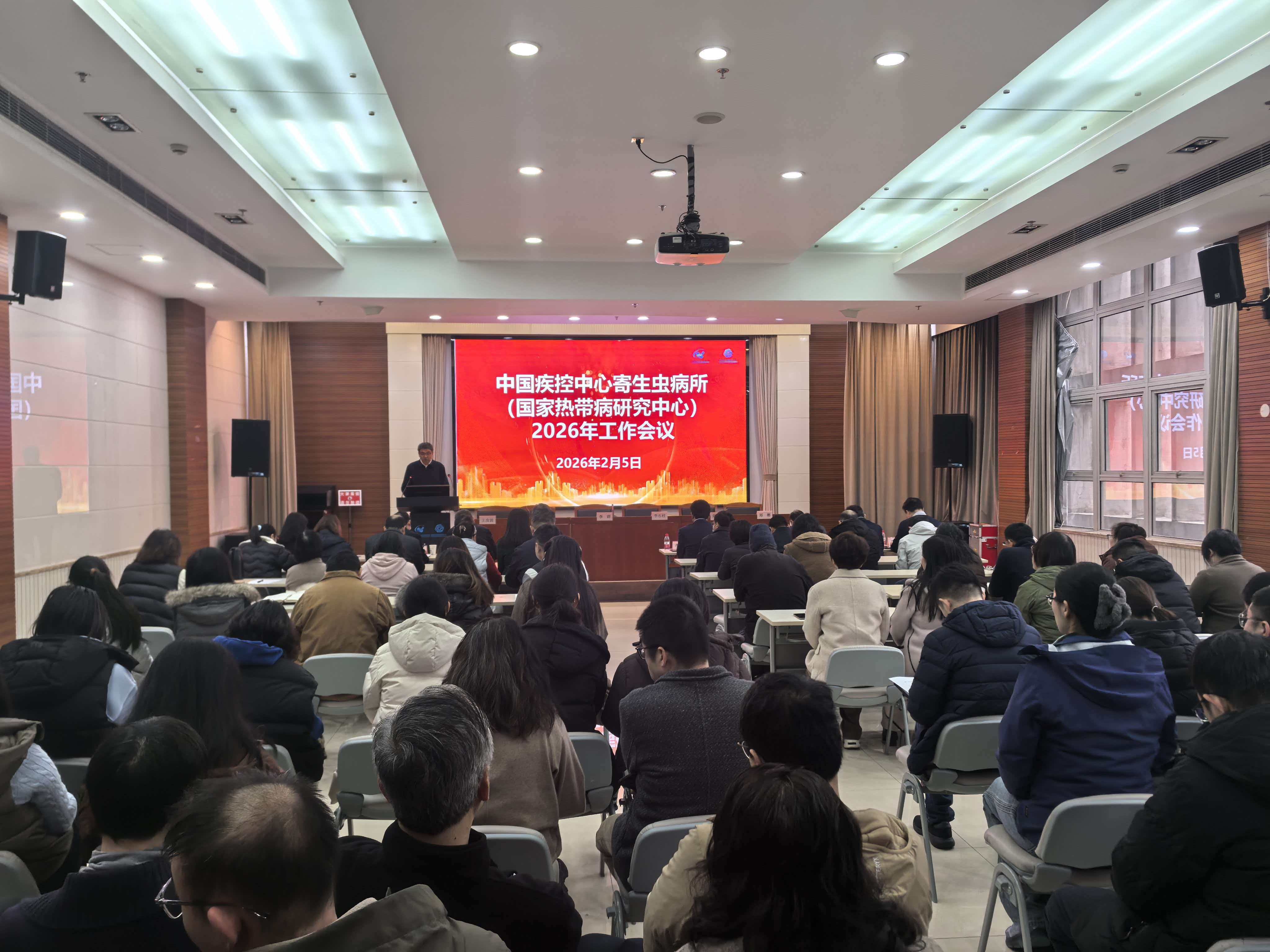 2月5日,中国疾控中心寄生虫病所召开2026年工作会议,中国疾控中心(中国预科院)党委常委、副主任李群和传染病管理处处长张彦平莅临指导,所领导班子成员、首席专家、干部职工等140余人参加会议。会议由所党委书记刘海龙主持。