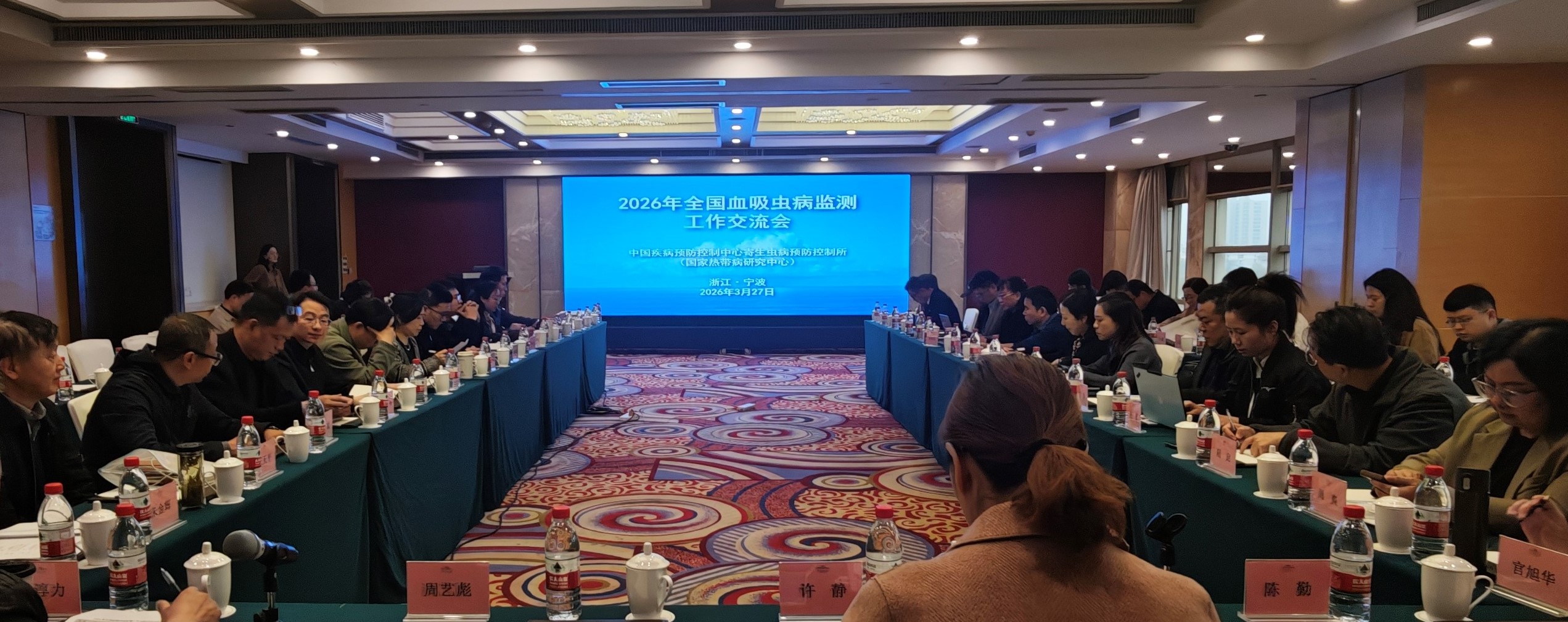 为全面总结2025年全国血吸虫病监测工作进展,交流各地监测经验,研讨当前存在的问题及下一步工作计划,中国疾控中心寄生虫病所于2026年3月27日在浙江省宁波市召开了全国血吸虫病监测工作交流会。来自复旦大学以及13个承担血吸虫病监测工作的省(自治区、直辖市)级防治机构的有关专家共计40余人参会。